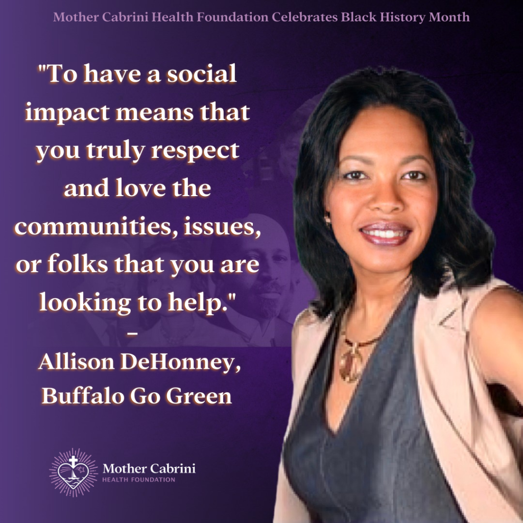 Up next, we asked Allison DeHonney about her impact at Buffalo Go Green. Buffalo Go Green (BGG) provides fresh fruits and vegetables, education, and training to underserved populations in the Buffalo and Niagara Falls area. BGG primarily targets neighborhoods such as Buffalo’s East Side, where the poverty rate is 38%, and there is a dearth of grocery options selling affordable and nutritious food.