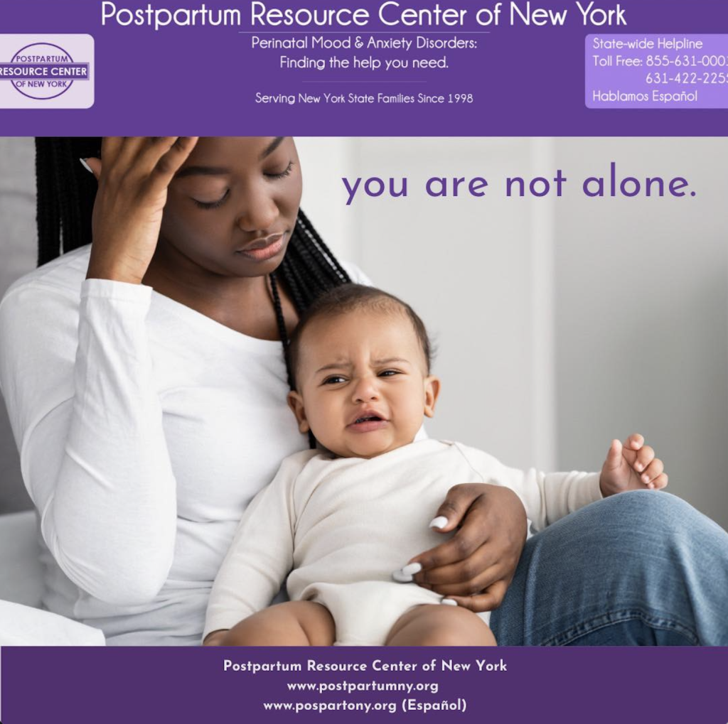 Another New York-based organization, Postpartum Resource Center of New York, promotes awareness of perinatal mood and anxiety disorders experienced by new parents. The organization operates a helpline for moms, dads, and the community, offering free, confidential, and non-judgmental telephone support.