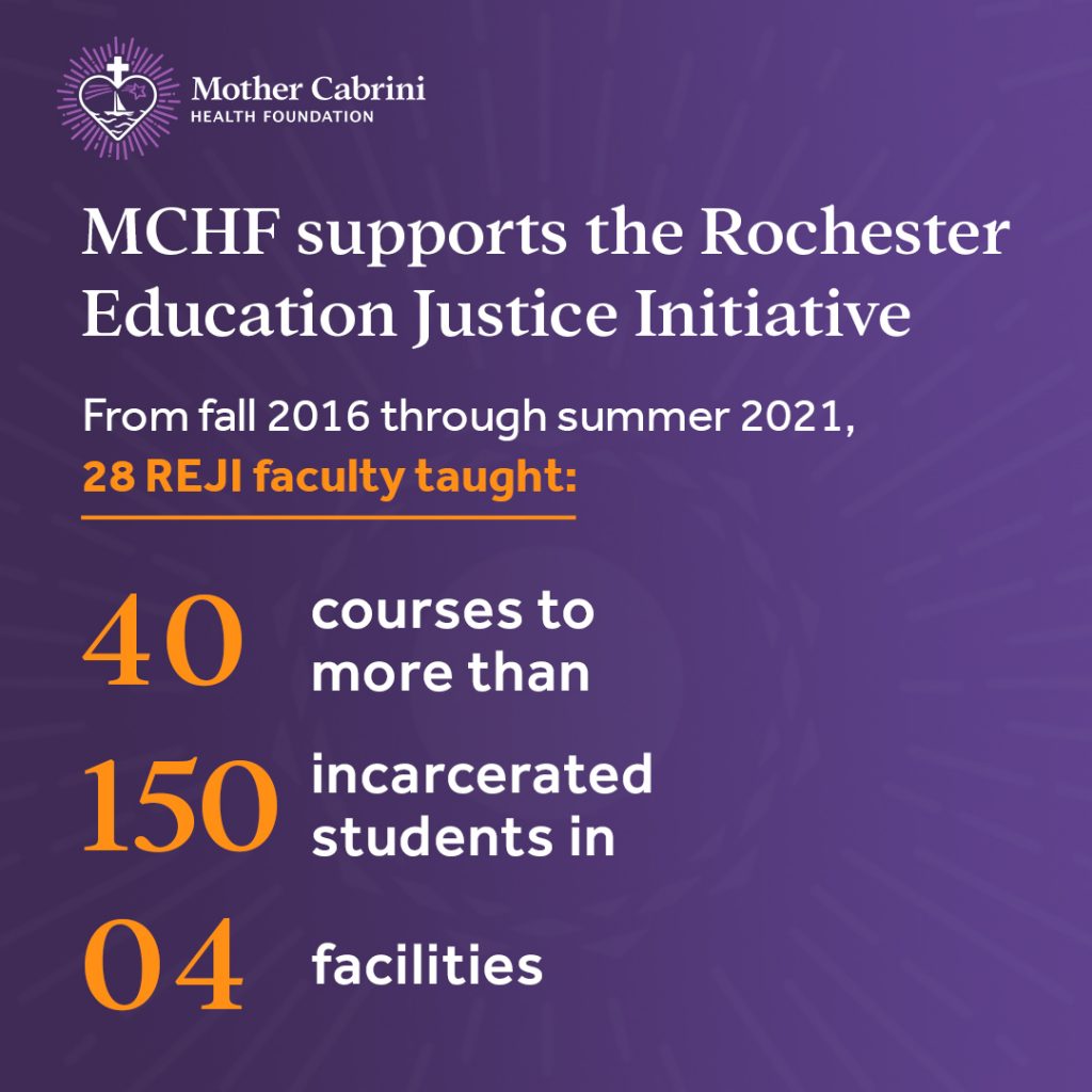 Recognizing the need for in-prison education in western New York, the Foundation granted $107,500 to the University of Rochester’s Education Justice Initiative (REJI) which provides incarcerated individuals access to college classes and opportunities for intellectual engagement. Through their programming, REJI aims to graduate incarcerated students with associate degrees by educating and empowering a community of learners with rigorous coursework and robust extracurricular activities in the humanities, sciences, and social sciences.